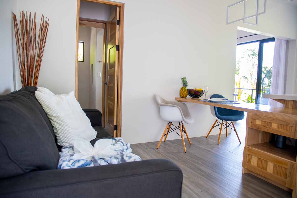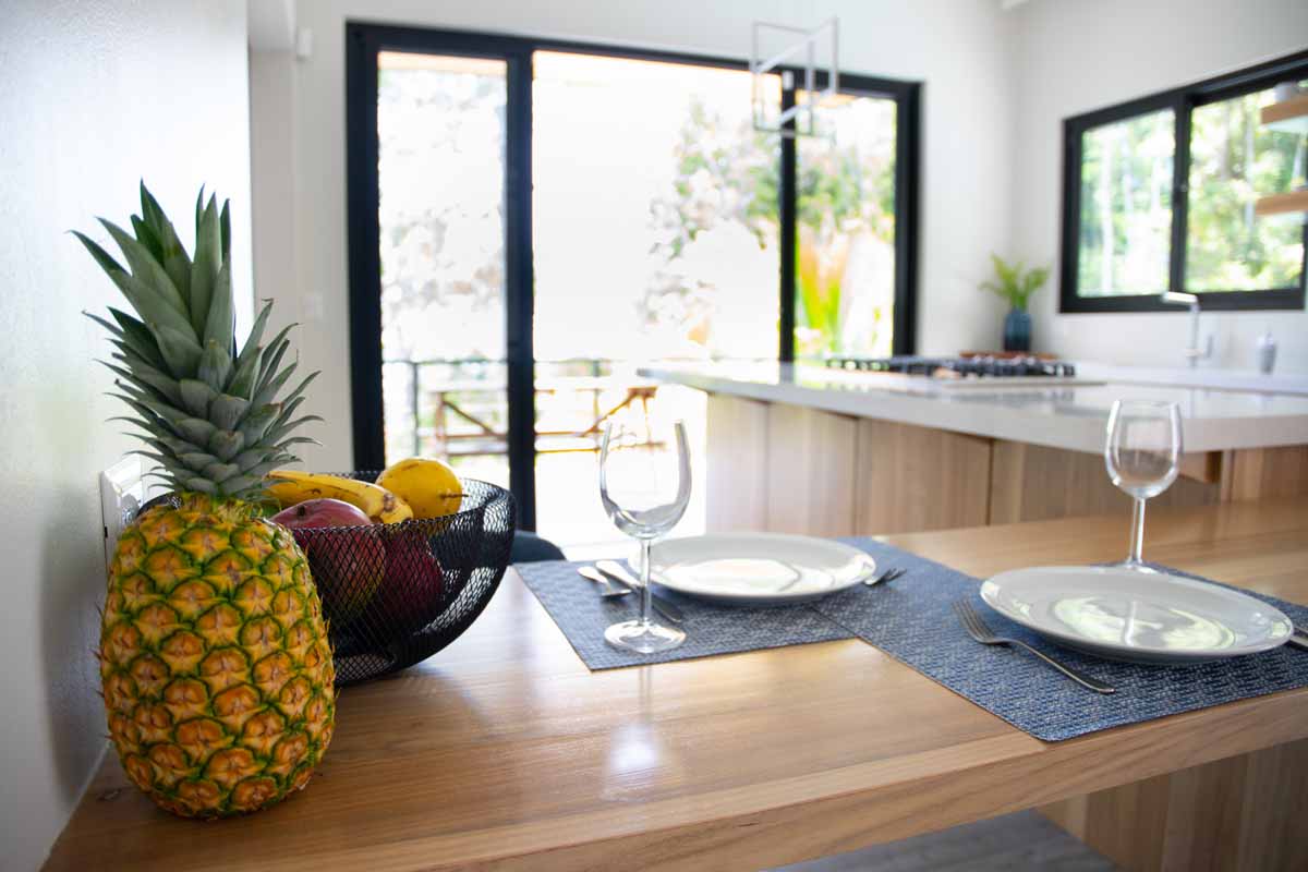 Hermosa Retreat is an exclusive escape nestled in the jungle above the famous Playa Hermosa (Uvita). Absolutely stunning views of the Pacific ocean, year-round sunset, and the legendary Whale’s tail. All that with the constant ocean breeze flowing through the house.
