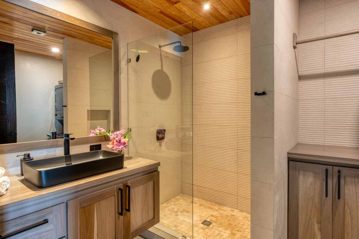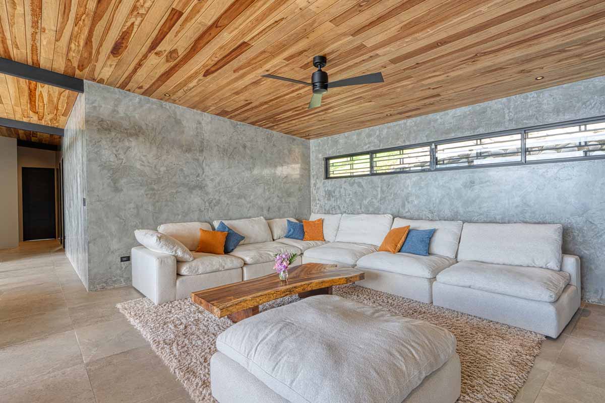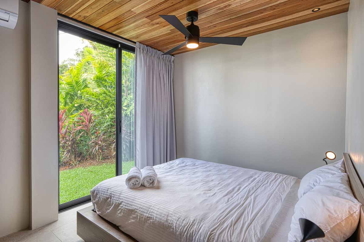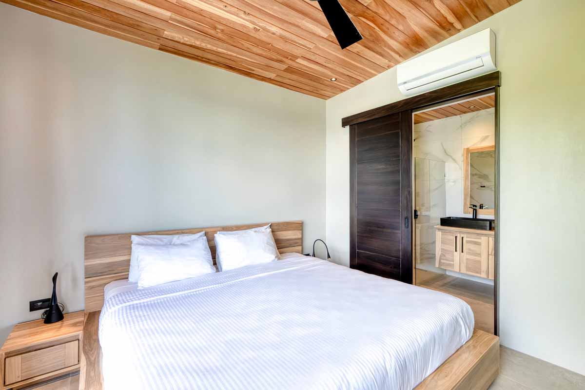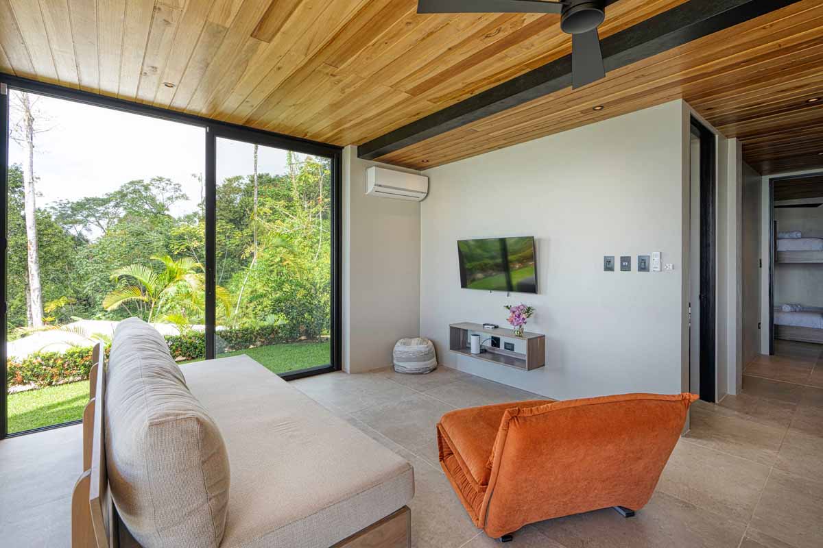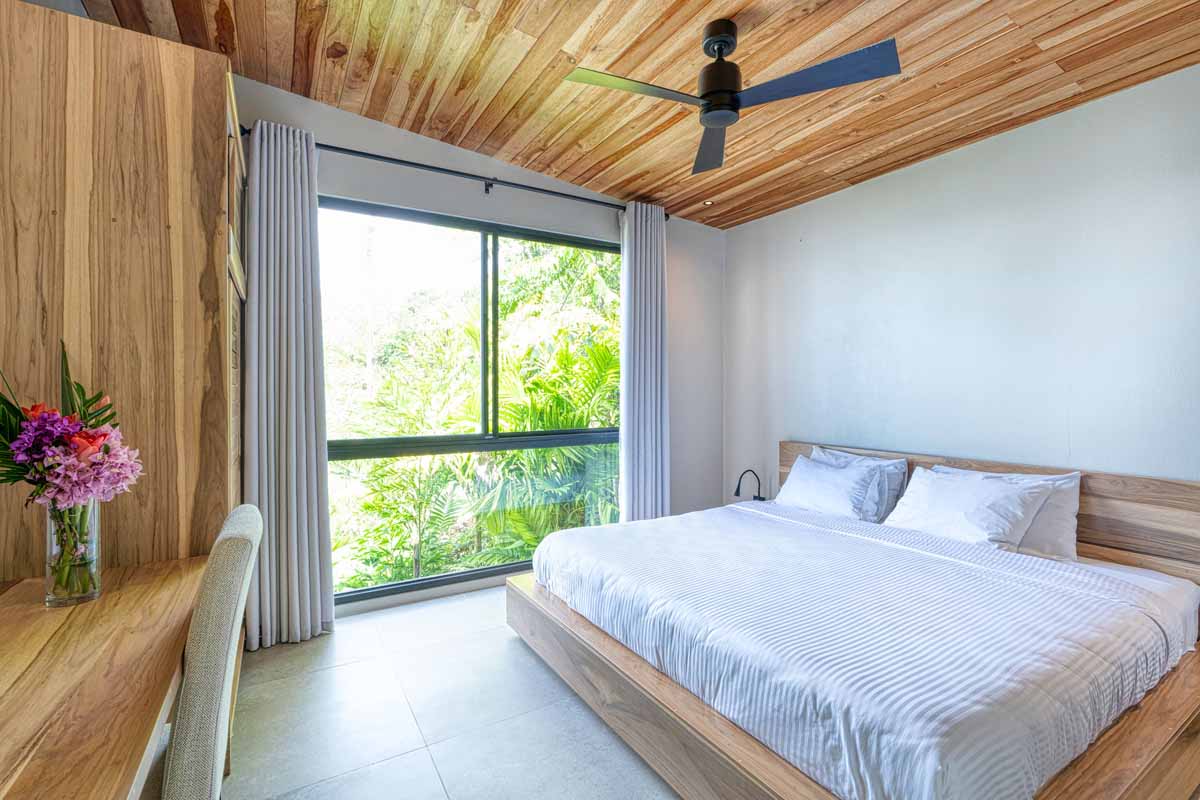 This house has 3 generous bedrooms with a king-size bed with ensuite bath, A full guest suite with a generous bedroom (with Queen bed) and a 5th bdrm with 2 double Queen size bunk beds. The living area is perfectly designed for the tropics as it opens up to a large outside terrace with a sofa and hammock to relax and lose yourself in this perfect paradise. A great place for yoga and meditation. For the warm afternoon, we have an infinity pool to refresh yourself. The house comes equipped with top-quality amenities, air-conditioning throughout the villa, and fiber internet (up to 100Mbps).