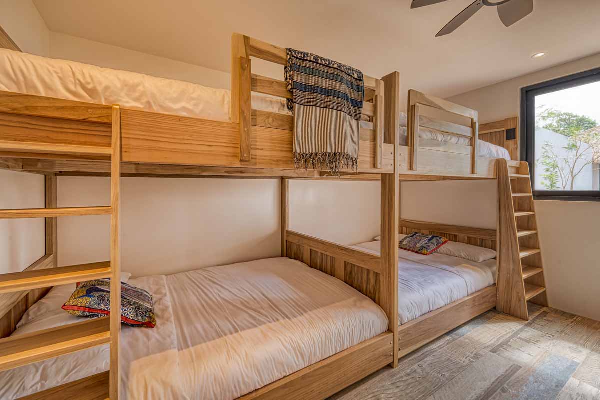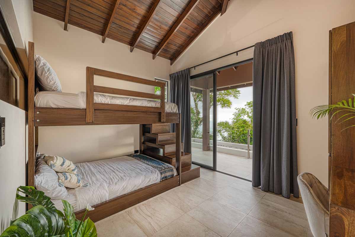 The casita master bedroom has king size bed and sea views and a bedroom with double queen bunks fantastic for teenagers or a second family unit .