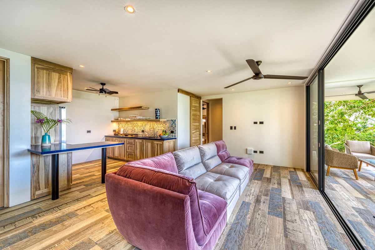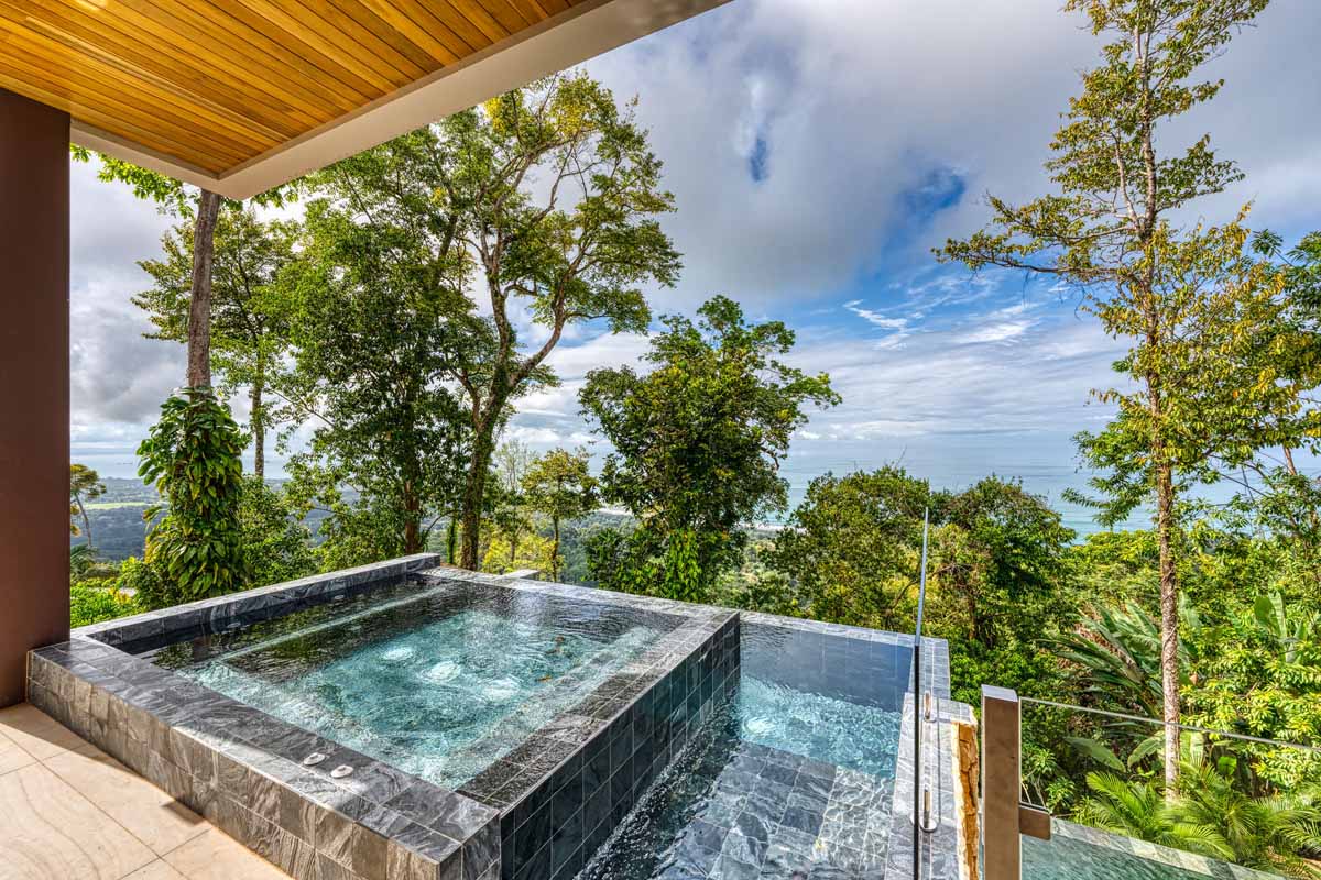 The terrace extends to a 12 person floating jacuzzi the perfect spot to enjoy sundowner cocktails or for a relaxing soak under the beautiful moonlit, starry Costa Rican skies. In addition there’s a dip pool to cool off on those warm sunny days.