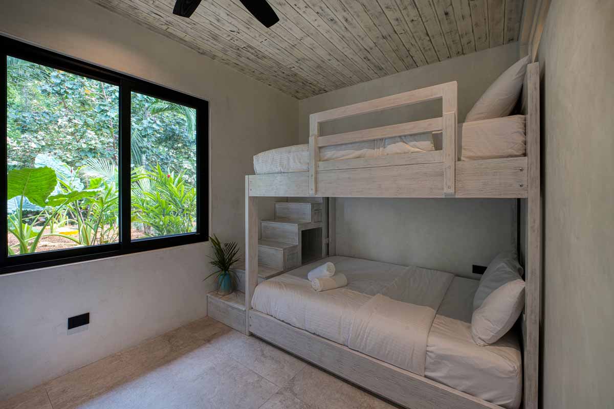 The villa is all on one floor. A generous master bedroom facing the pool. 3 VIP guest bedrooms, one has a Queen size bunk bed.